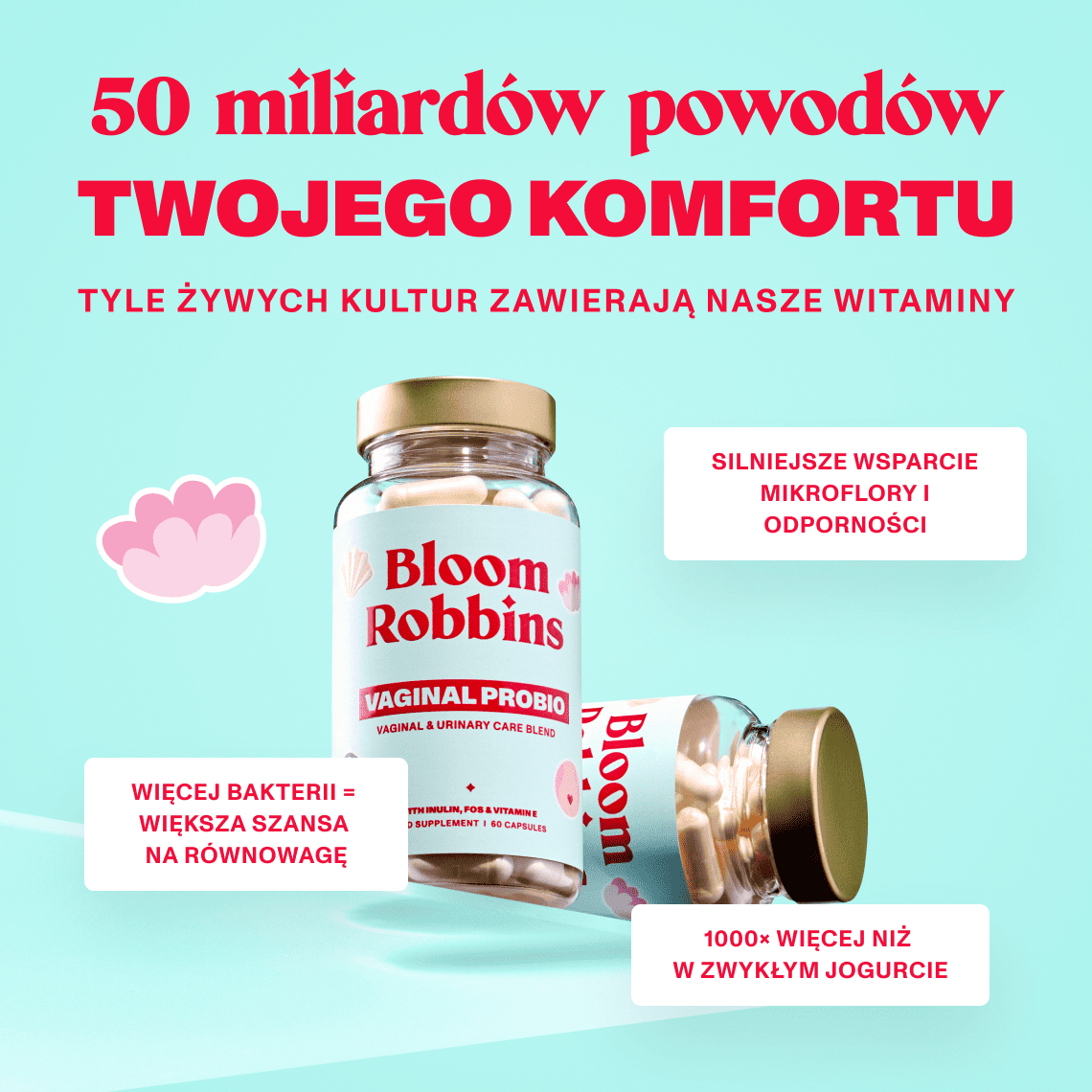 Łączy probiotyki i prebiotyki w unikalne symbiotikum. Dodatkowo zawiera wysokie stężenie żywych kultur – aż 50 miliardów CFU dziennie, czyli więcej niż w większości podobnych produktów.